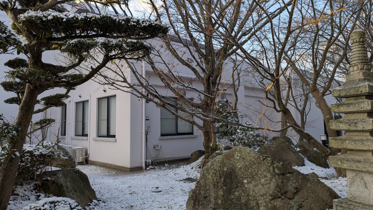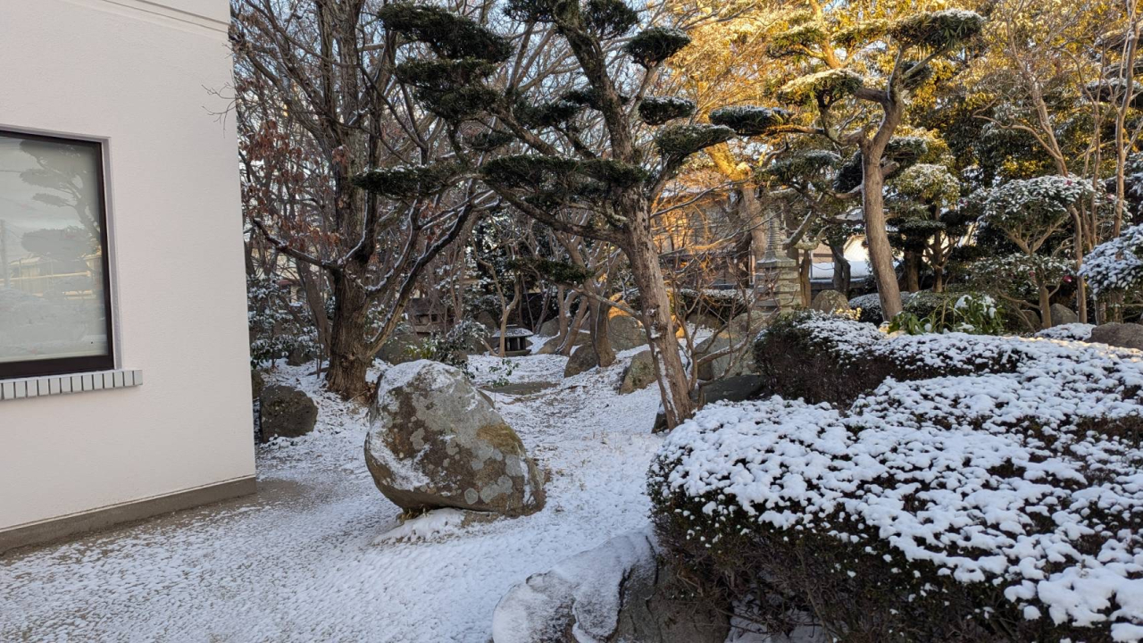 さて今朝は医院の庭が雪景色になっており、いつもと異なる風情があり、院長が写真に収めてくれました。